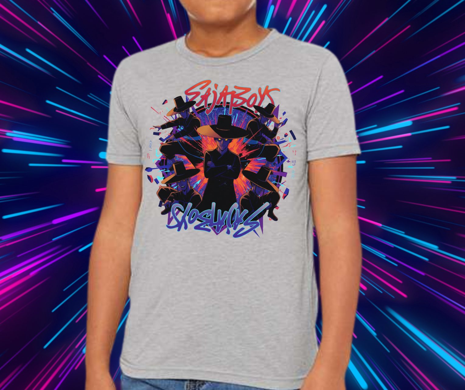 This tee features an electrifying “Demon Saja Boys” inspired design with bold neon graphics, graffiti-style lettering, and a mysterious crew that looks straight out of a high-energy music video.